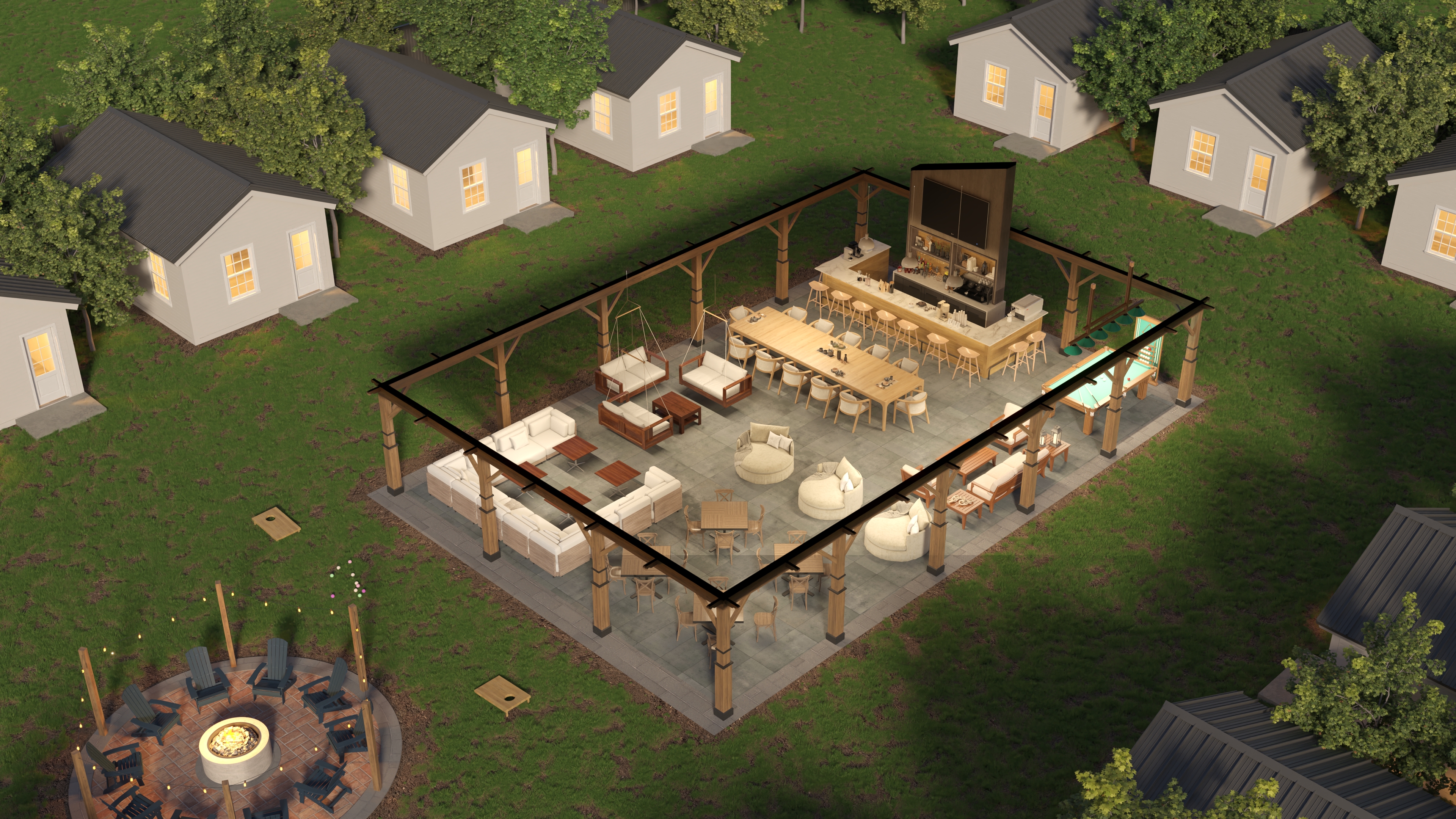 Each booking includes exclusive access to premium amenities, a spacious outdoor pavilion with dining lounge spaces, a barrel sauna, a premium firepit, green spaces, and a hot tub, all reserved for your group alone.